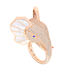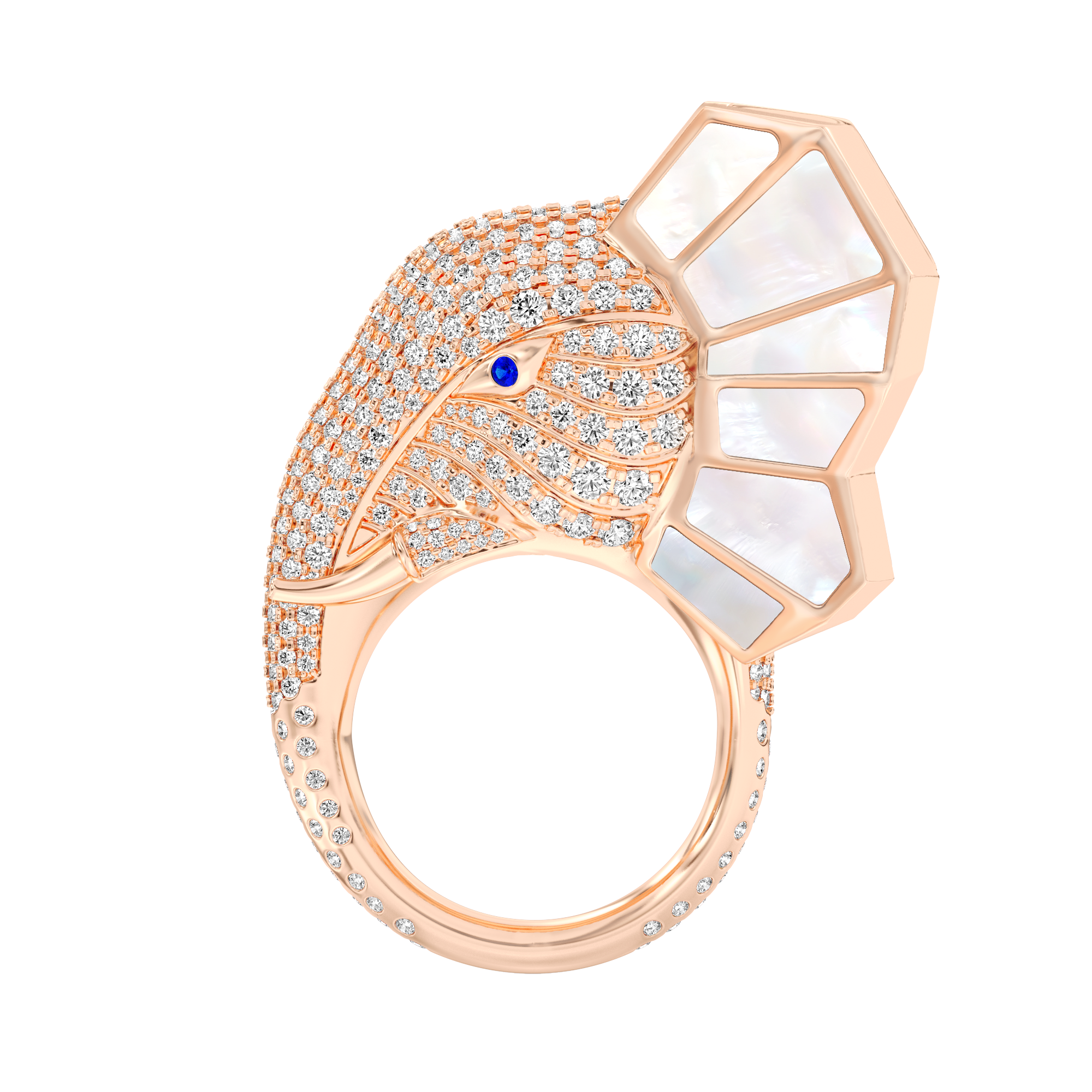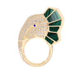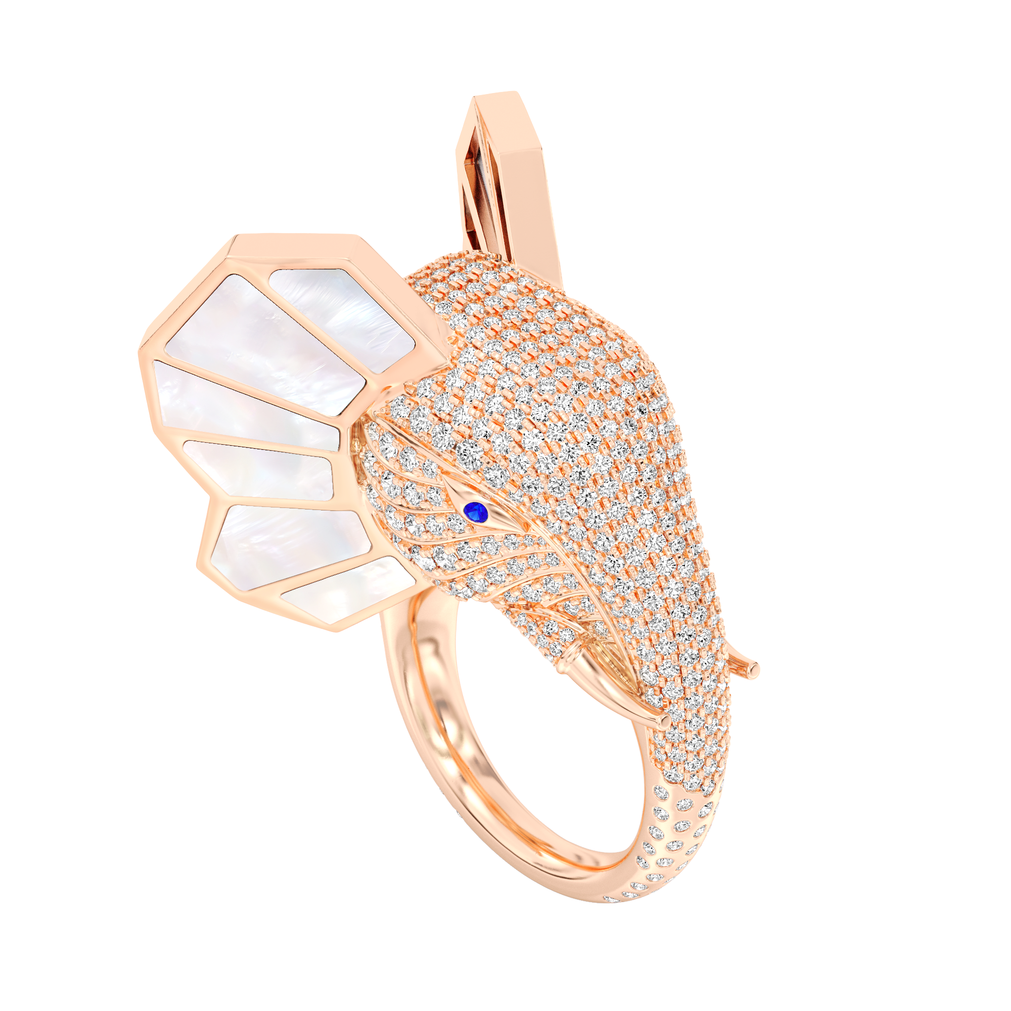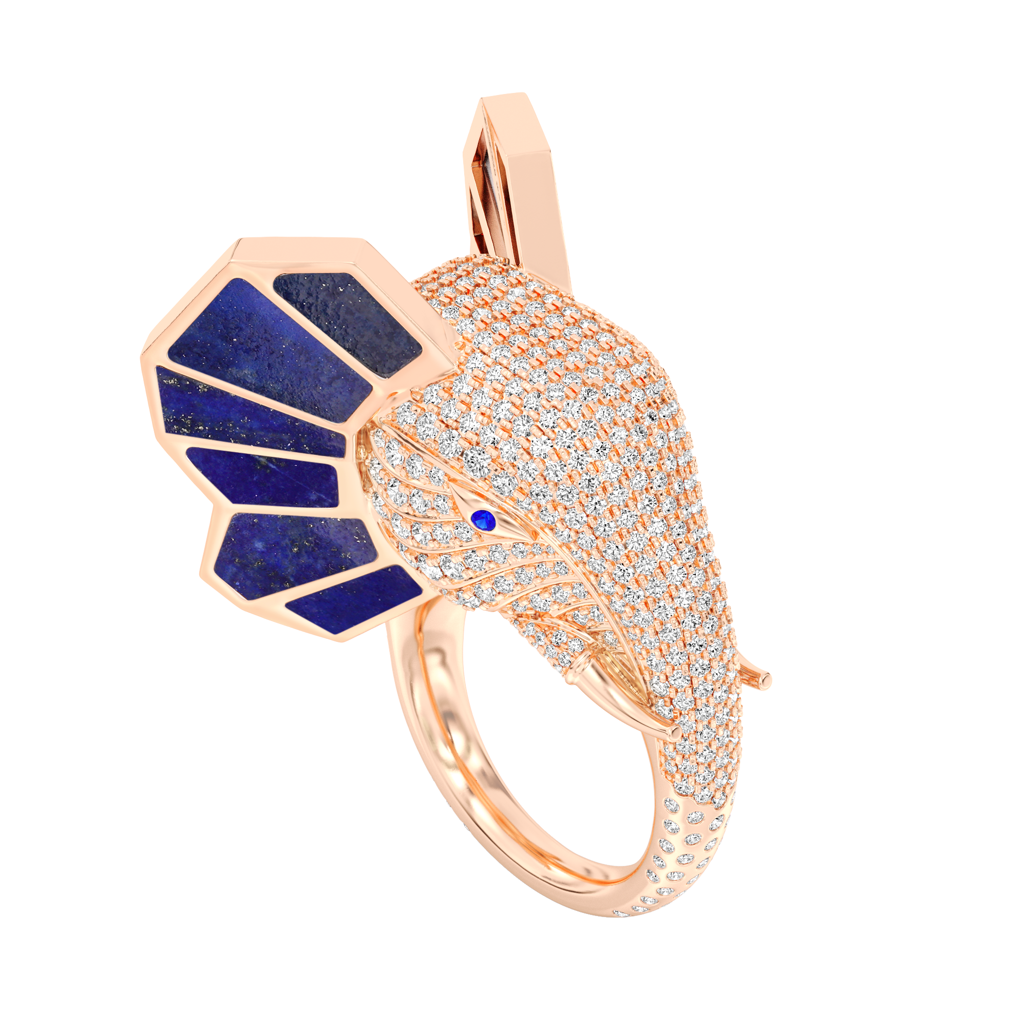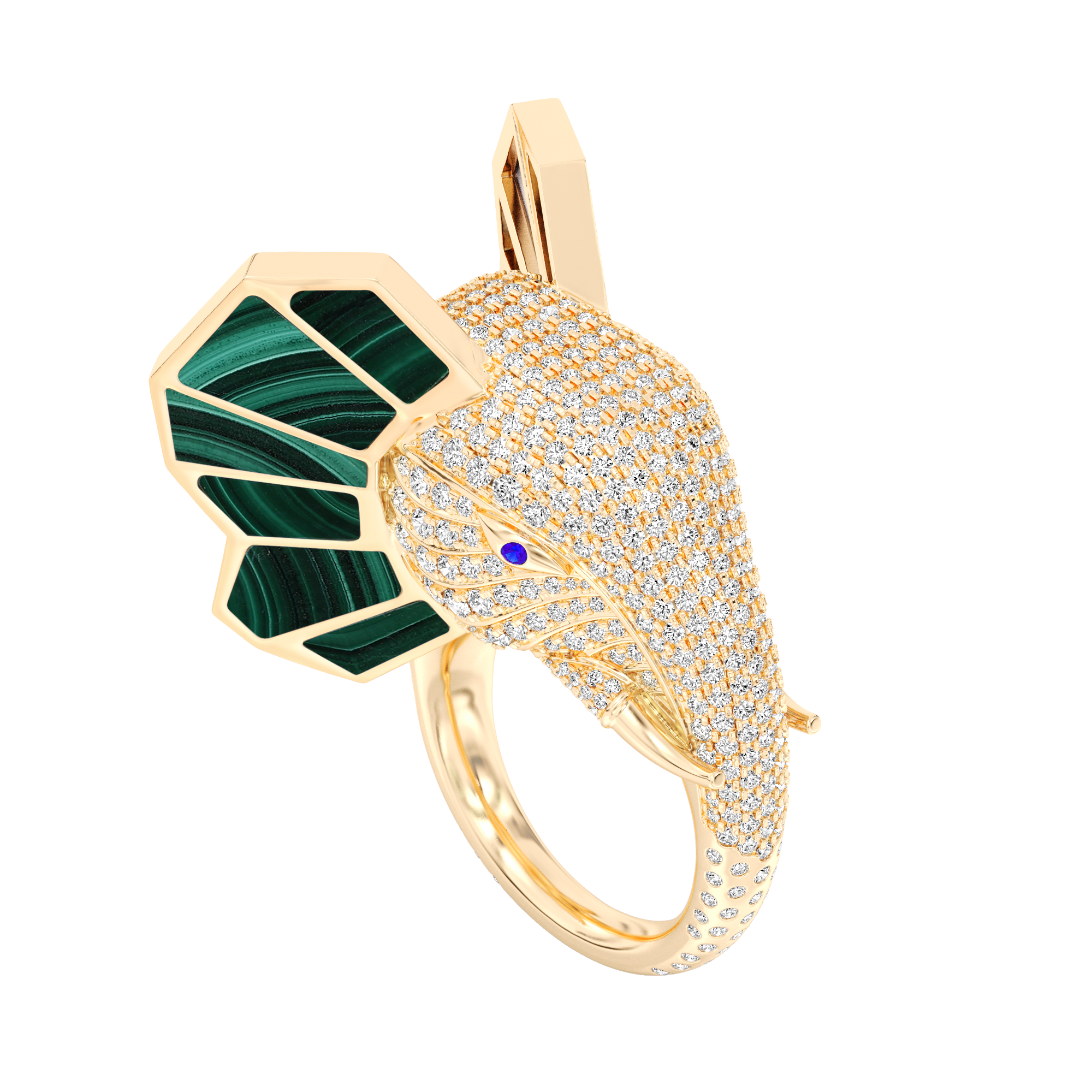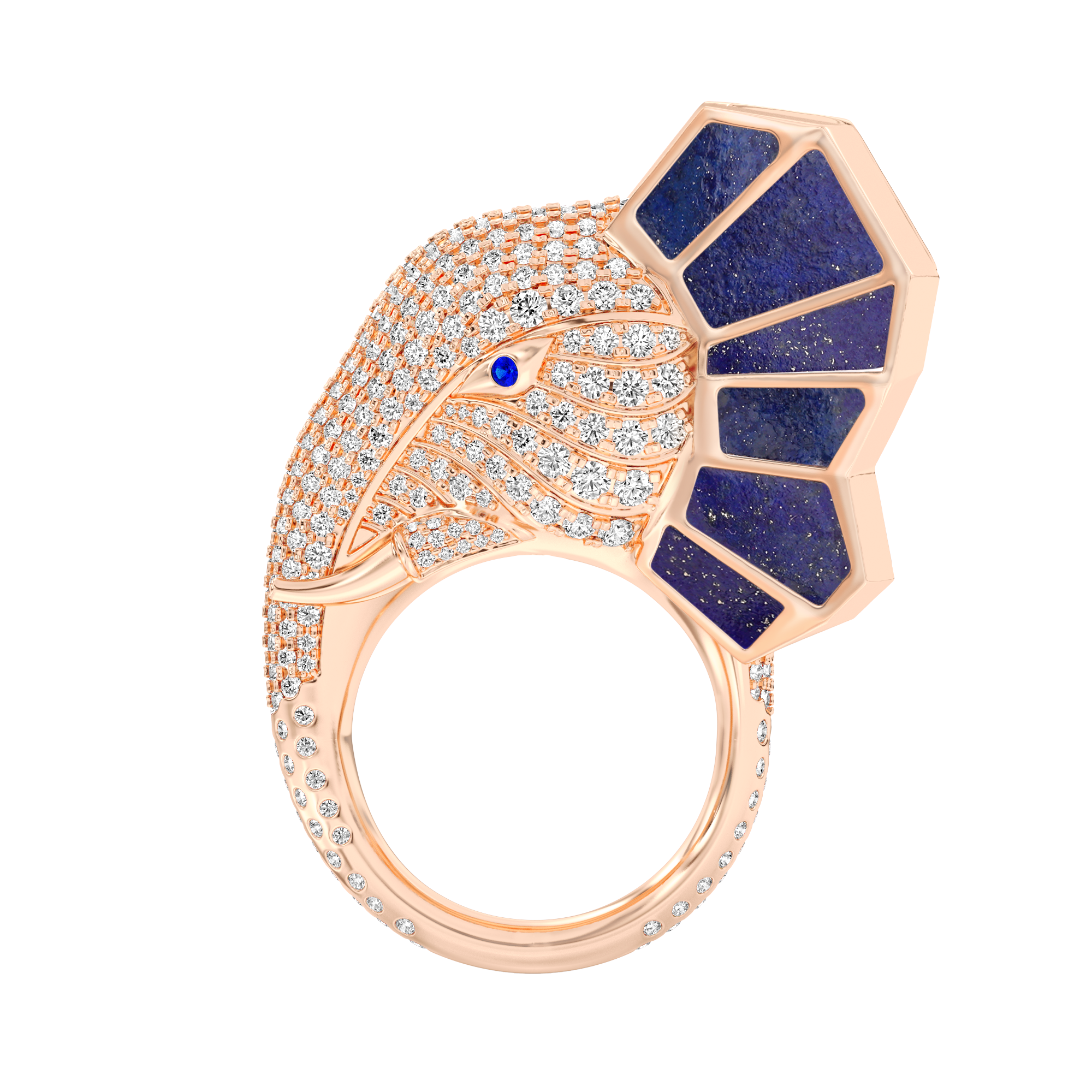 An icon of strength, spirit, and symbolism—The Tusker Side Profile Ring channels the untamed power of your inner force. Sculpted with the elegance of fine diamonds and framed by geometric panels of rich gemstone inlay, the ring brings together heritage and bold modernity in a single statement. Designed to stand tall, it evokes presence, purpose, and protection.